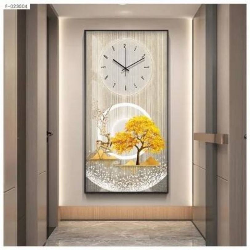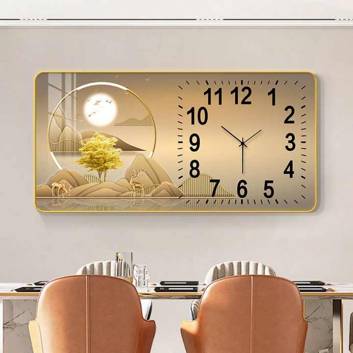 Ceramic Timepiece Art High End Atmospheric Hanging Clock, Golden Wealth Tree, Moonlight, and Sea Deer Healing System