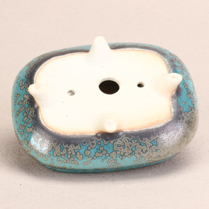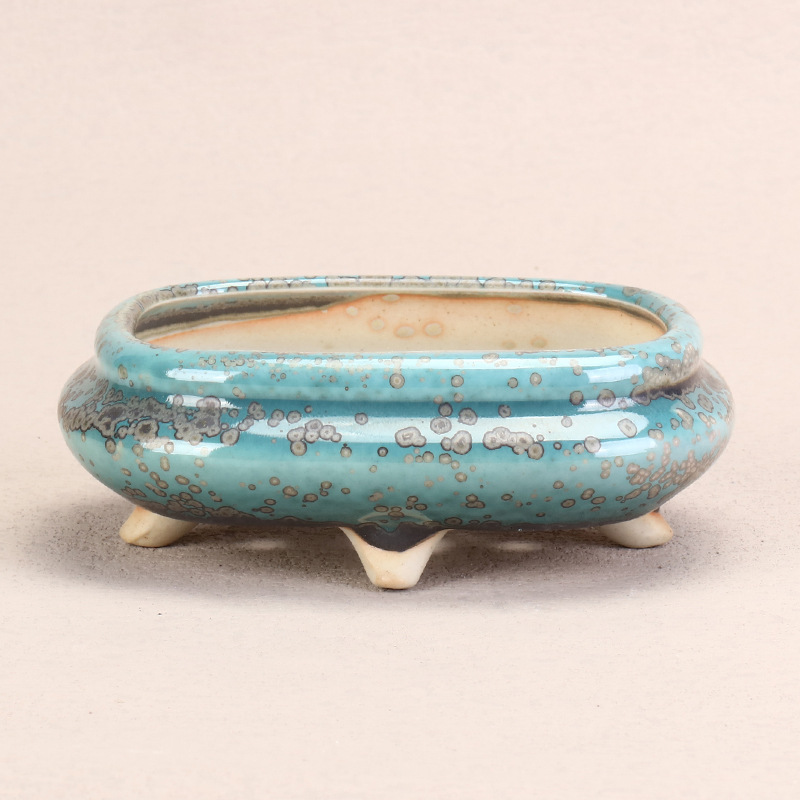 Pot en céramique émaillé turquoise, écologique, en sable violet, petit pot à succulentes avec trou de drainage, pot à bonsaï pour jardin et bureau
