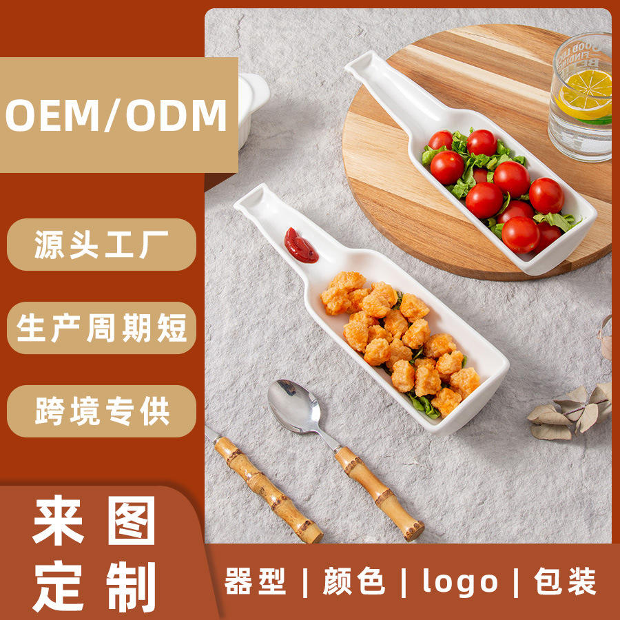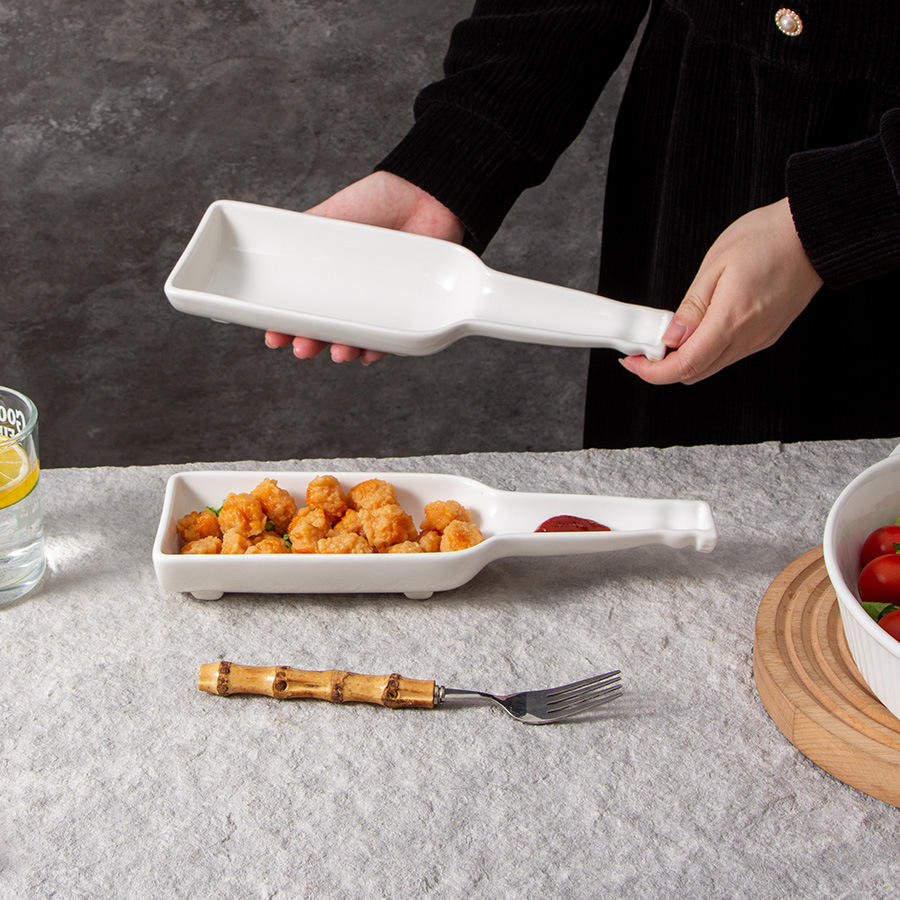 Assiette en céramique pour bouteille de vin, blanche, forme irrégulière, pour collations, desserts, fêtes, hôtels, café, thé, service