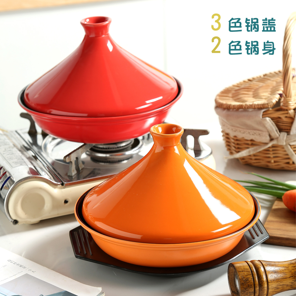 Pot Taji en céramique ou en fonte Pot en argile résistant à la chaleur avec fond plat pour ragoût à la vapeur légumes et viande