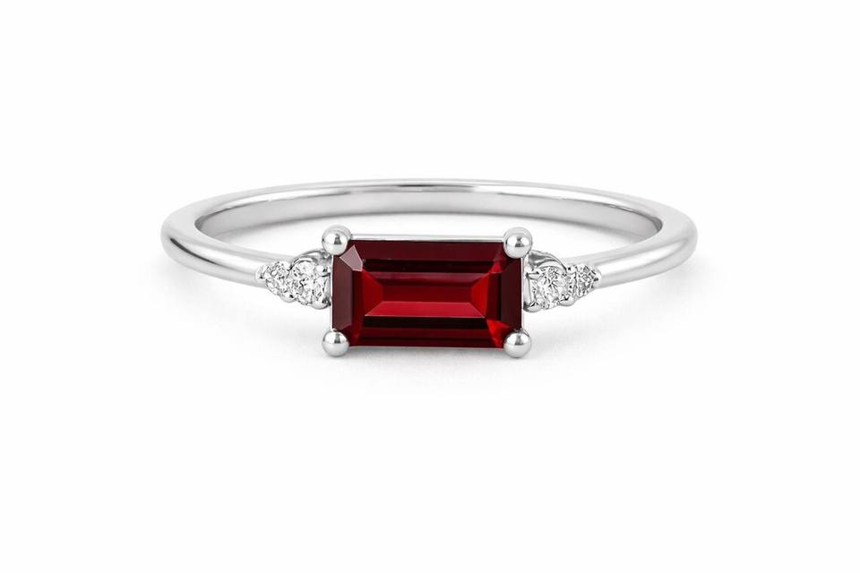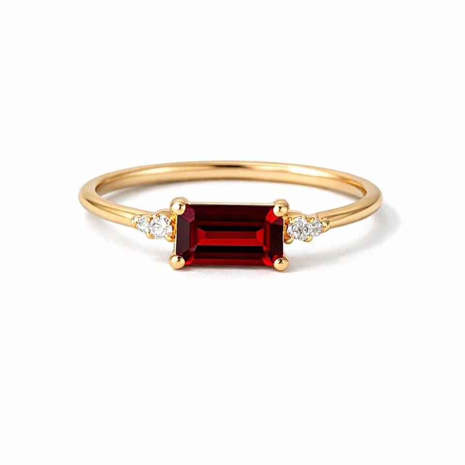 Nom du produit:Bague de fiançailles en or 14 carats avec grenat naturel taille émeraude et diamant