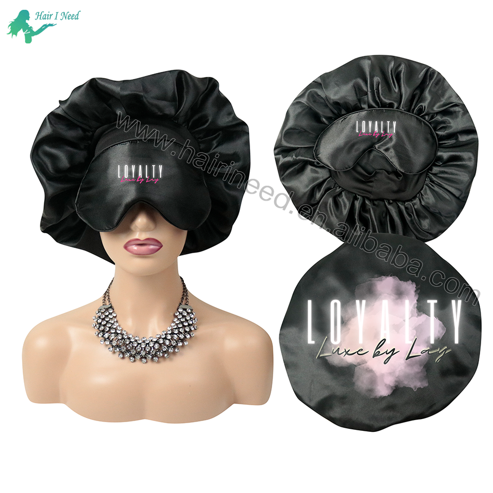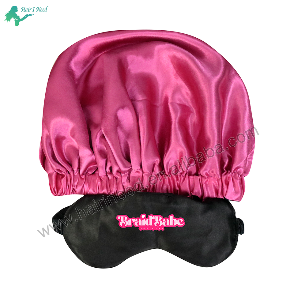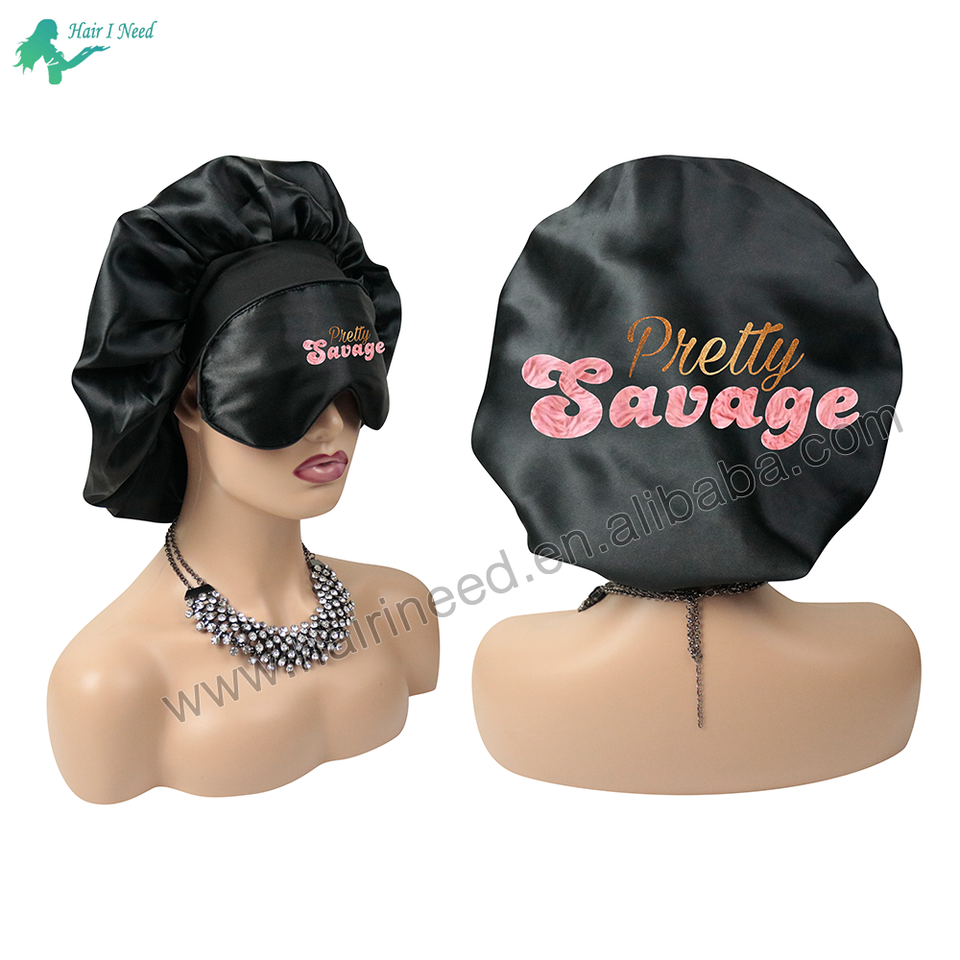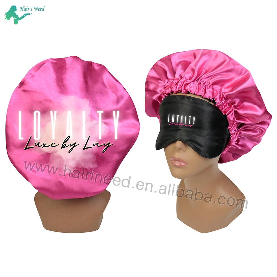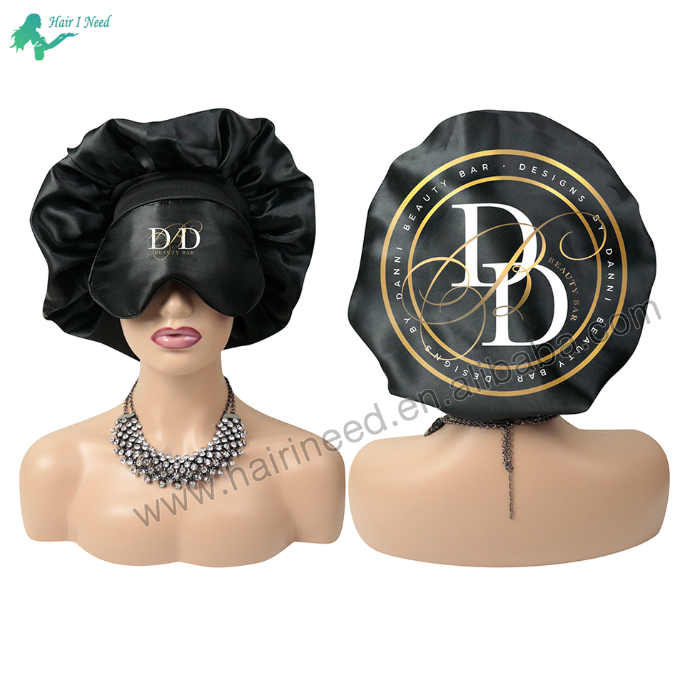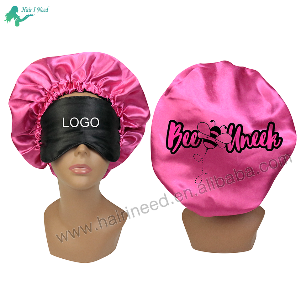 Produits certifiés commande à l'essai conception personnalisée logo cheveux Satin Bonnet bonnet de nuit avec masque élastique pour les yeux Blinder