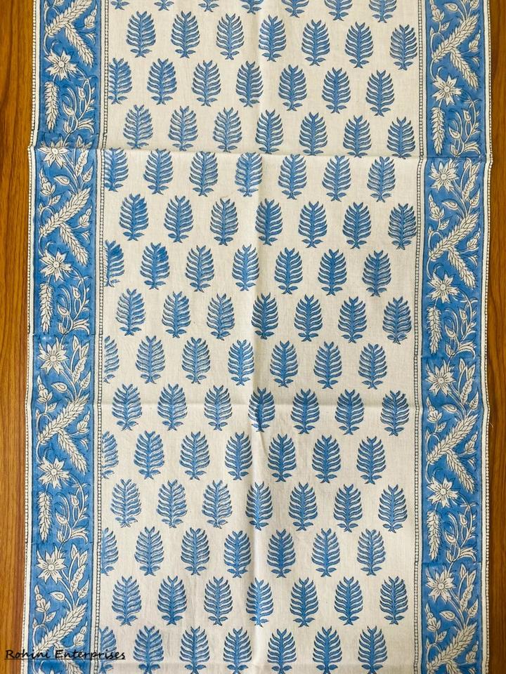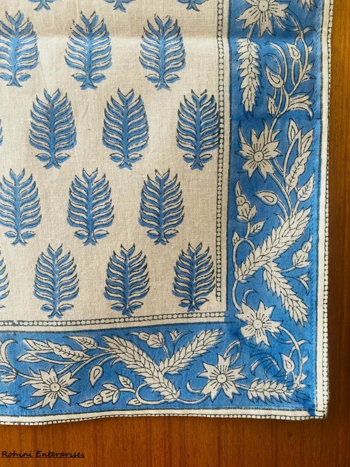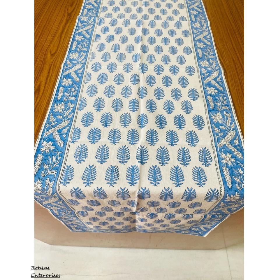 Cerulean bleu main bloc imprimé coton chemin de Table feuilles indiennes Floral taille personnalisée linge de Table de mariage hôtel usage domestique personnalisé