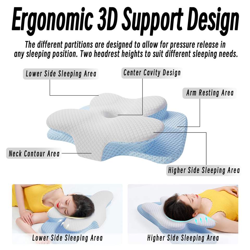 Oreiller cervical pour le cou et les épaules, oreillers ergonomiques en mousse à mémoire de forme pour dormir avec taie d'oreiller lavable