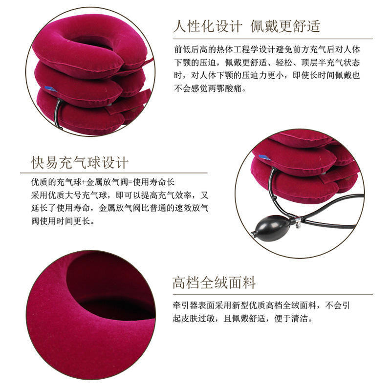 Dispositif de traction cervicale gonflable, attelle de cou à trois couches de soutien, utilisation à domicile, massage santé, fonctionnement manuel