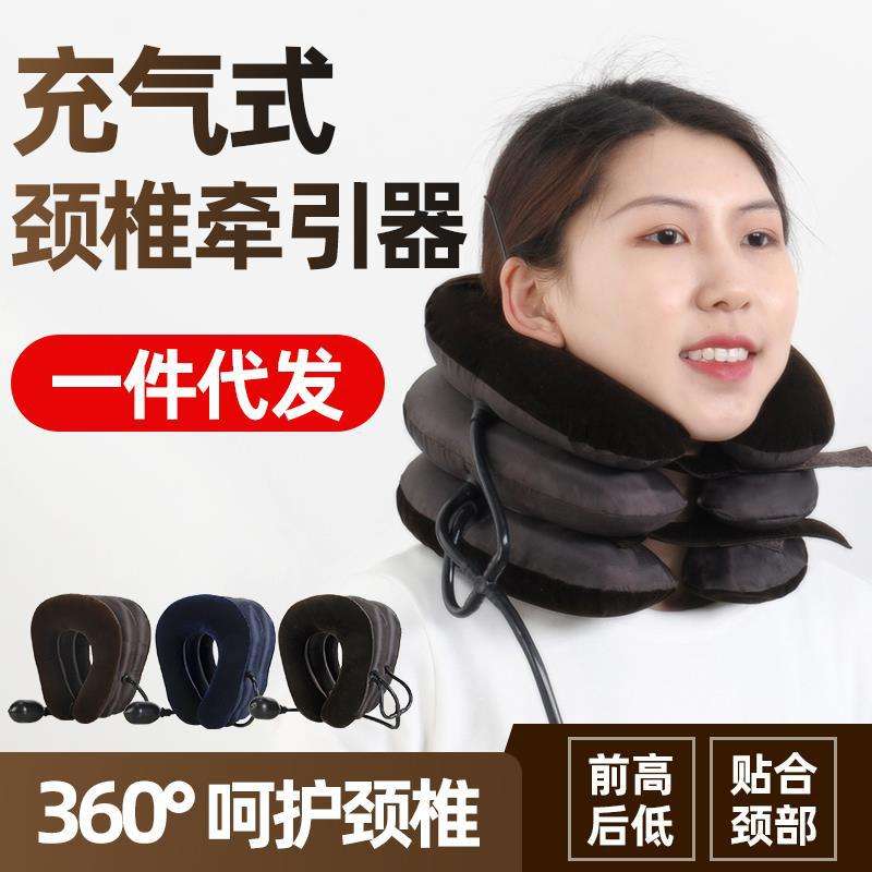 Dispositif de traction cervicale gonflable, support de cou électrique en velours à trois couches, couverture complète, usage domestique