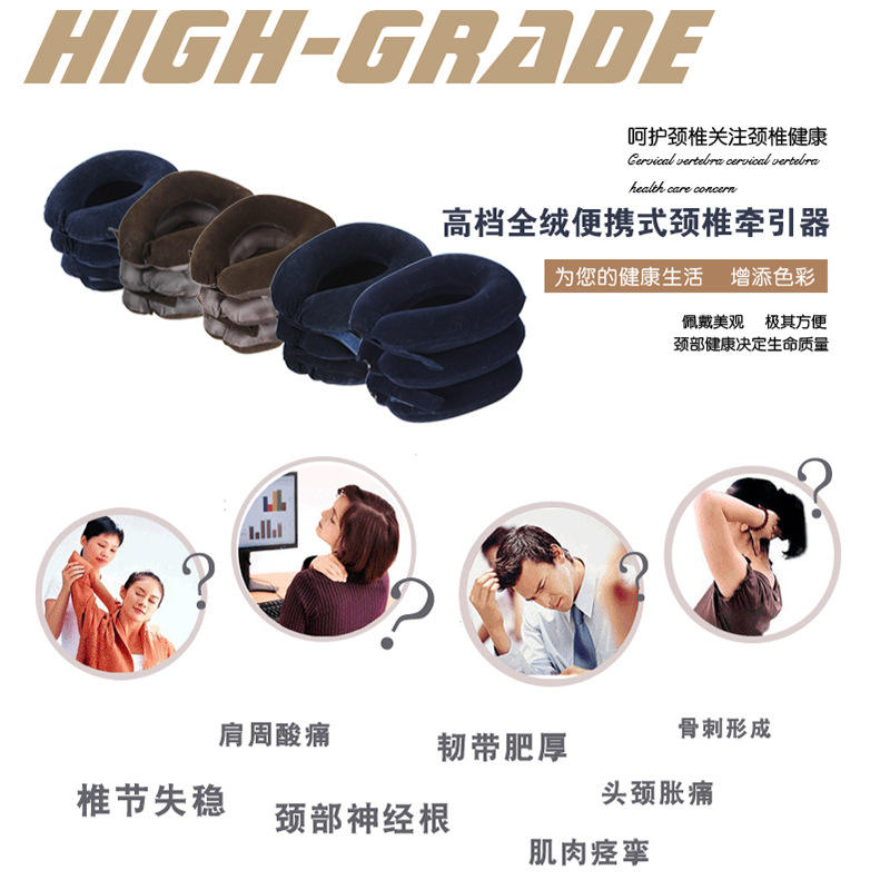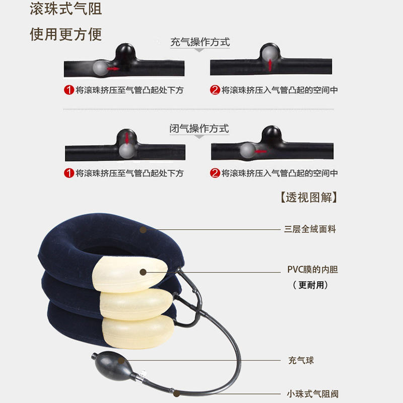 Dispositif de traction cervicale gonflable, support de cou en velours à trois couches, fonctionnement manuel, massage santé