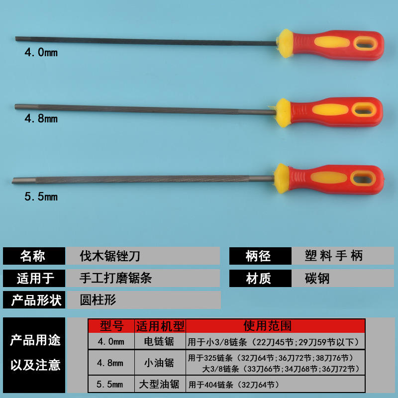 Ensemble de limes pour tronçonneuse, rondes, 225 mm, en acier rapide, polyvalentes, pour usage manuel et bricolage