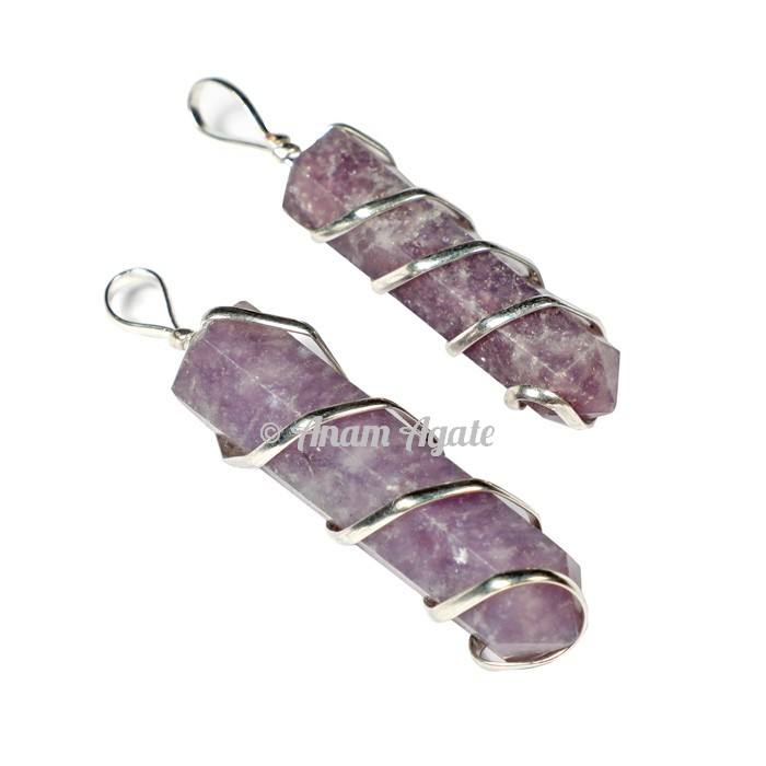 Chakra Collé Double Pointu Feng Shui Pendentif Sculpté Agate Gemstone Wrap Style