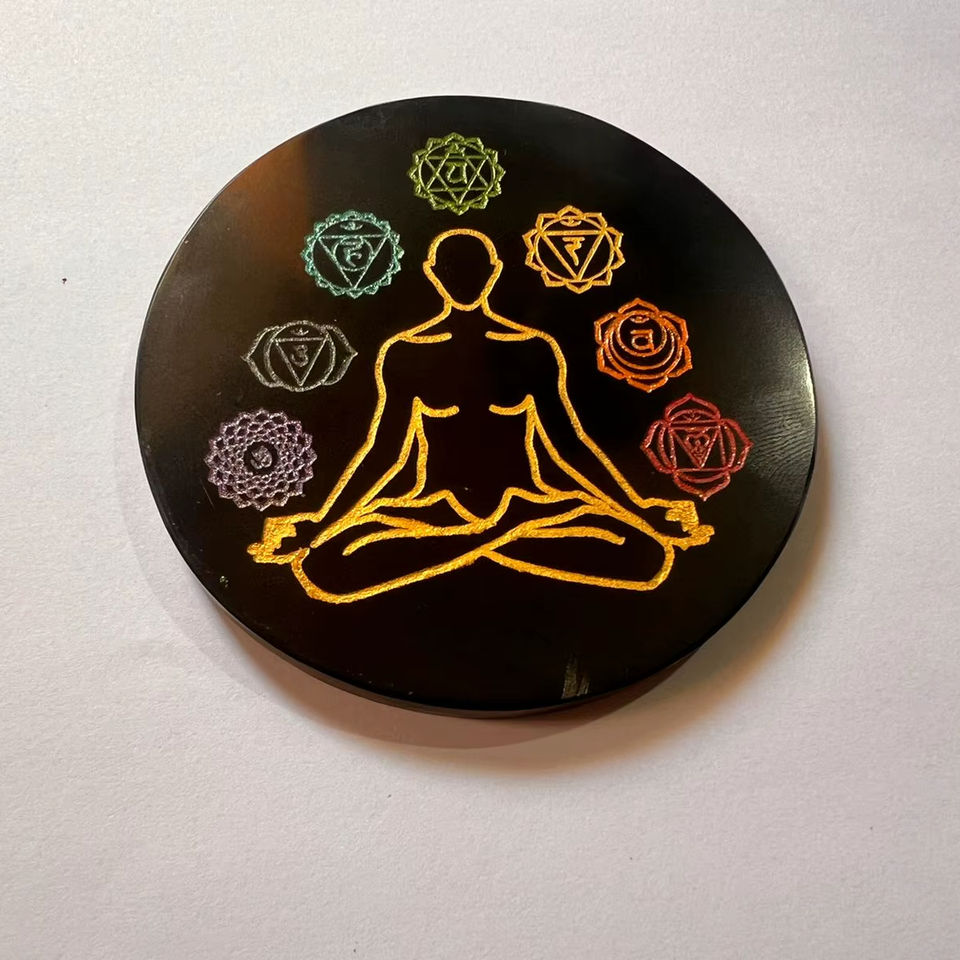 Plaque de Reiki en Pierre Polie Gravée Chakra Bouddha, Planche de Recharge, Guérison, Méditation, Décoration Spirituelle, Cadeau Ange