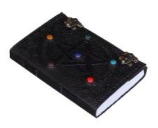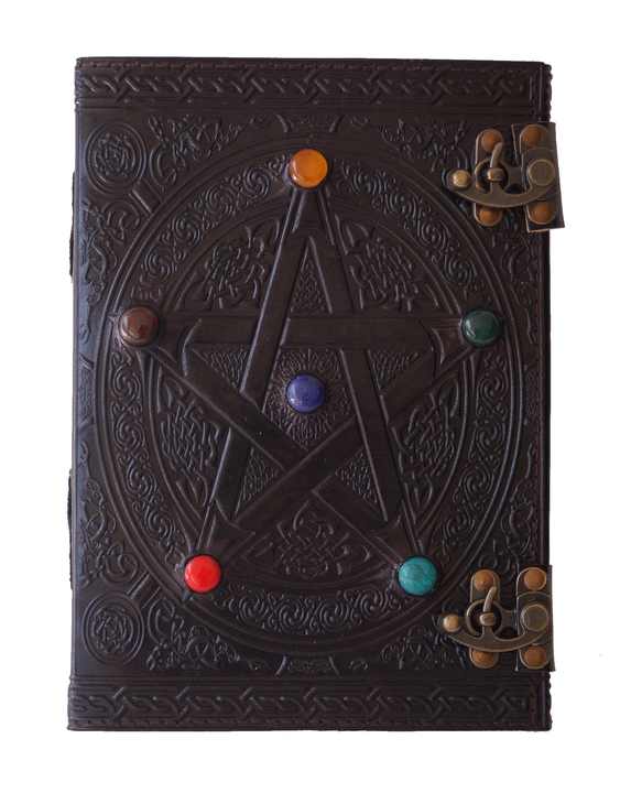 Cahier de Chakra, nouveau pentagramme, grand Journal en cuir gaufré celtique avec serrure, Journal avec pierre 10x7 pouces