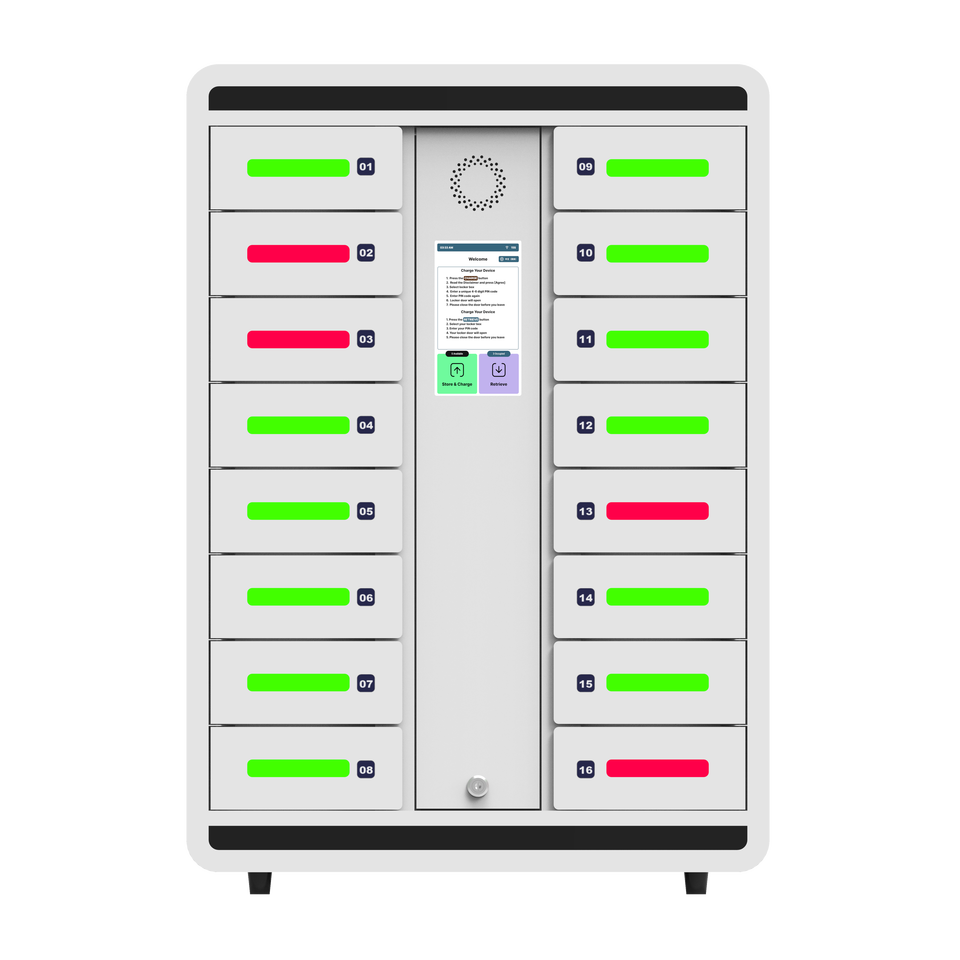 Casier de recharge intelligent à 16 compartiments avec système de verrouillage à écran tactile de 7 pouces