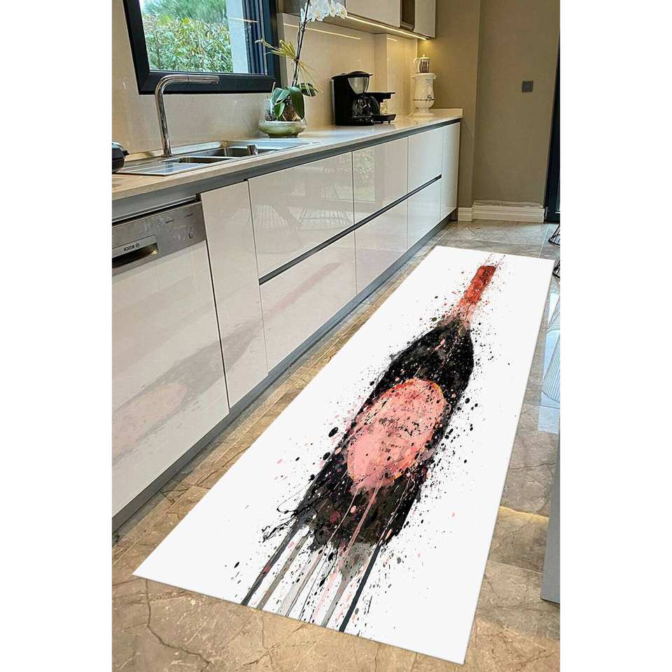 Tapis imprimé bouteille de champagne - Design aquarelle moderne, antidérapant, cuisine et cadeau, tapis doux non tissé