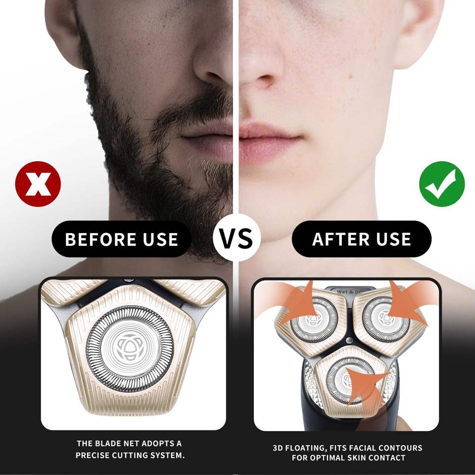 Têtes de rasoir électriques de remplacement couleur champagne, triple lame, étanches IPX7, compatibles avec les rasoirs rotatifs des séries S5000 S7000
