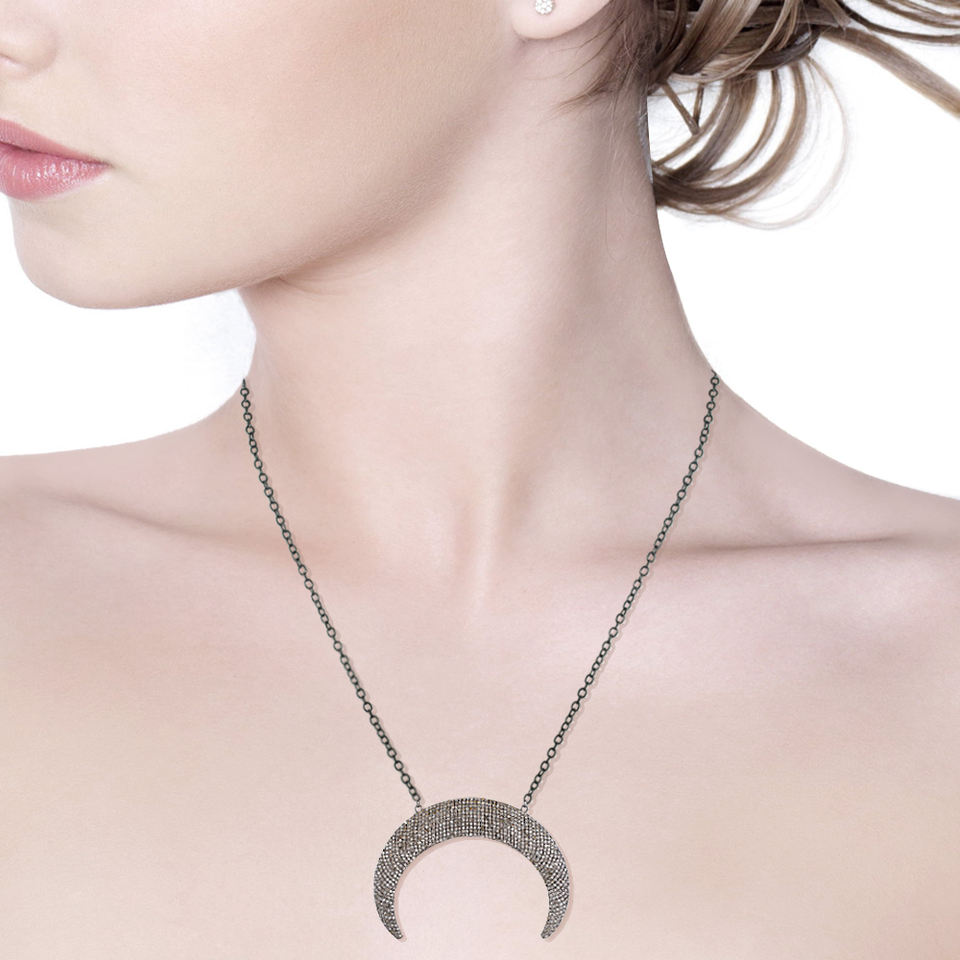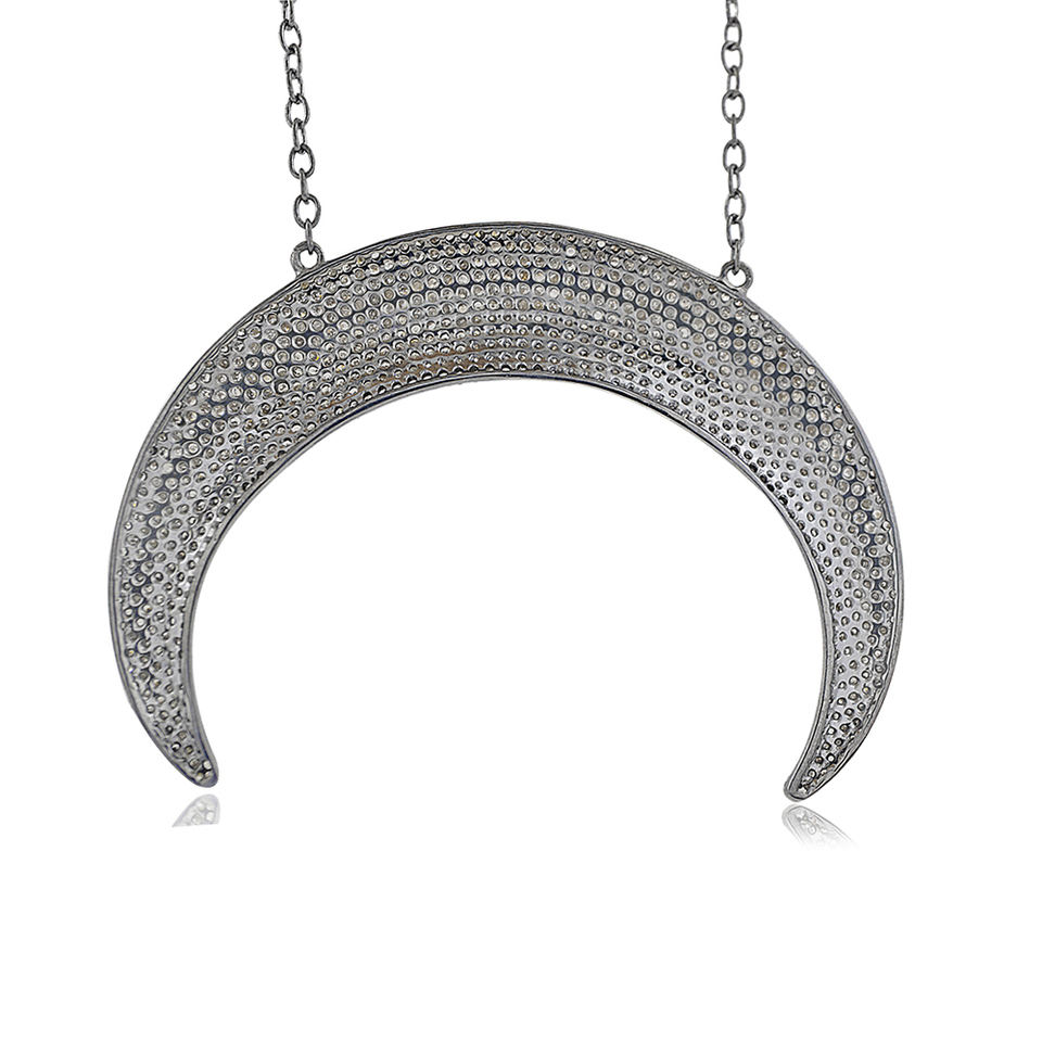 Collier pendentif lune croissante en argent 925 oxydé avec diamant champagne naturel, bijoux fins faits à la main, vente en gros