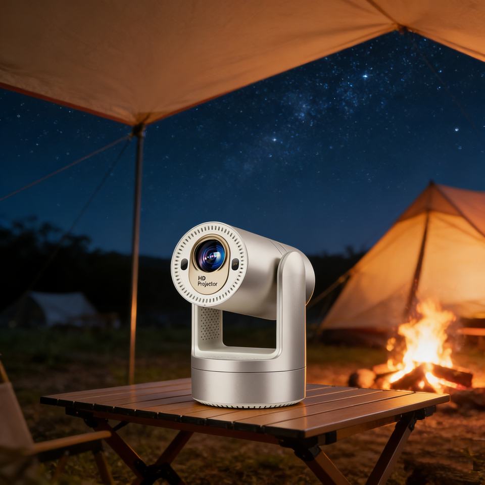 Mini projecteur or champagne, correction automatique de la distorsion trapézoïdale, projecteur HD grand écran 16:9, batterie intégrée 5200 mAh, projecteur portable