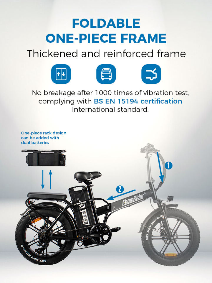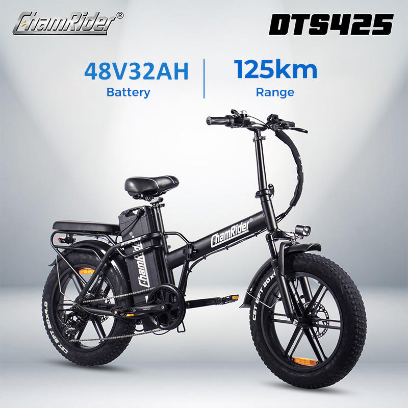 Vélo électrique pliant Chamrider DTS425 à cadre en acier, pneus larges de 20 pouces, 7 vitesses, moteur sans balais haute vitesse, pour livraison et travail, 48V