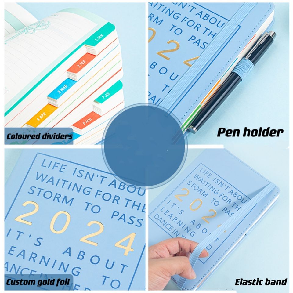 Changer la couverture et le contenu/le libellé calendrier anglais personnalisé livre A5 2024 agenda français avec séparateurs