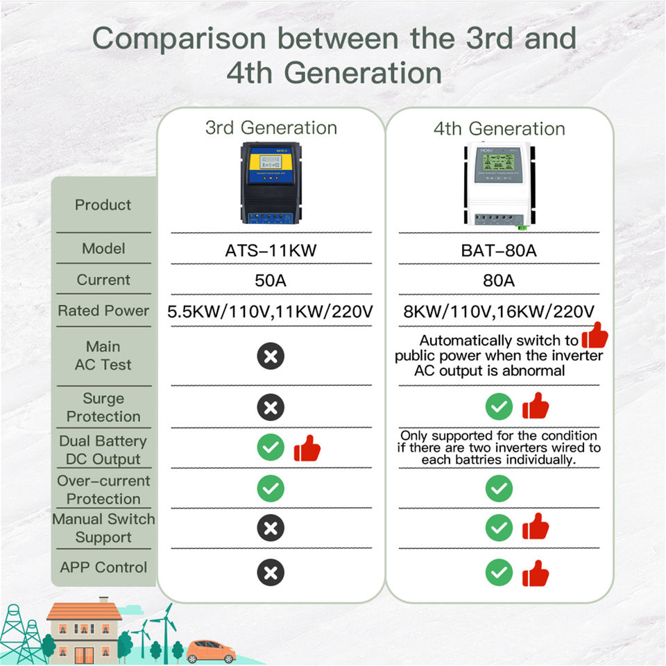 Commutateurs inverseurs Transfert automatique Double commutateurs d'alimentation 50/60Hz 220V 80A