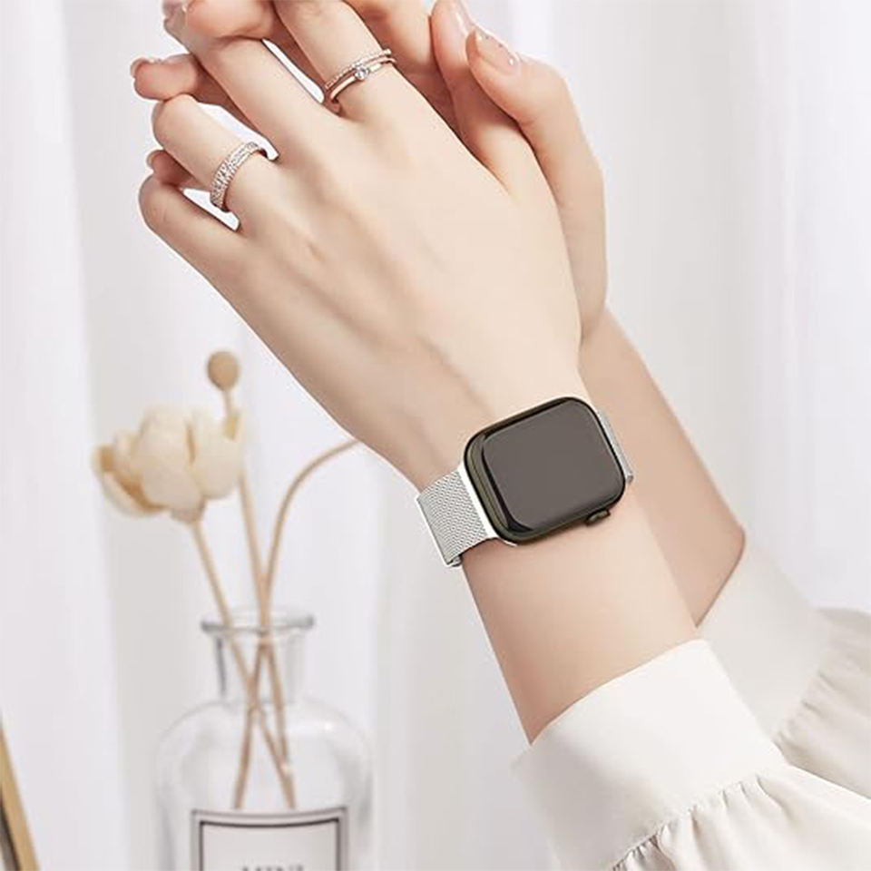 Changming Bracelet en métal en acier inoxydable milanais à double maille magnétique pour Apple Watch Ultra 2 49mm Series 10 42mm 46mm