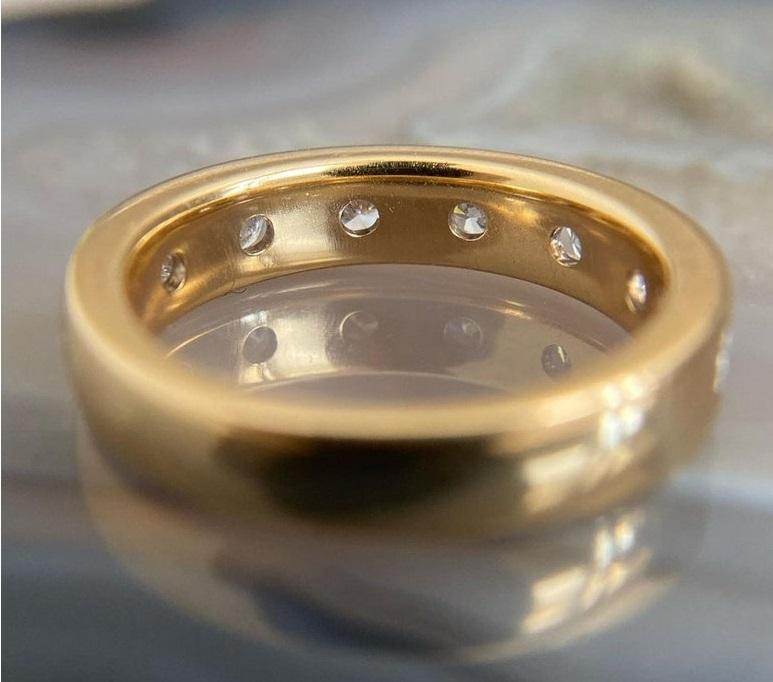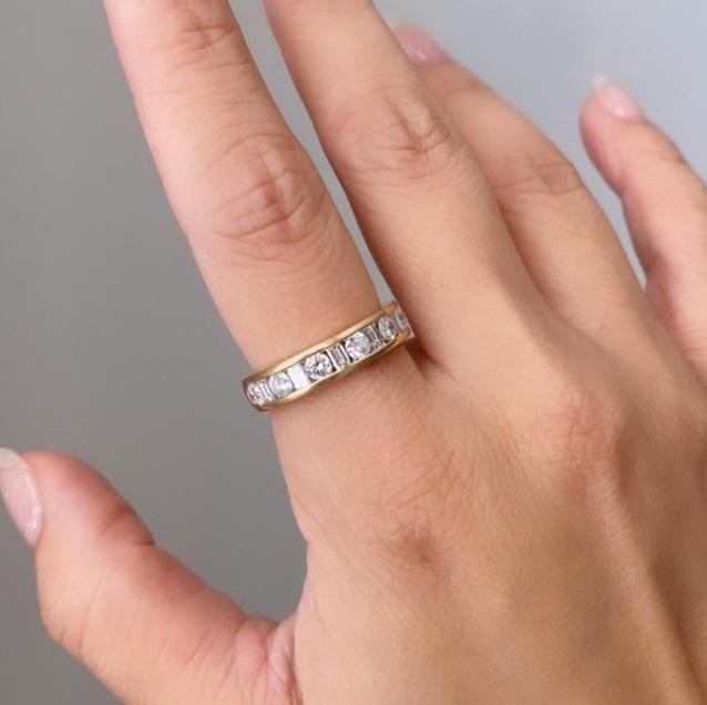 Ensemble de canaux demi-bague d'éternité ronde et baguette en laboratoire bande de mariage en diamant 14K or massif fêtes d'anniversaire cadeau Har