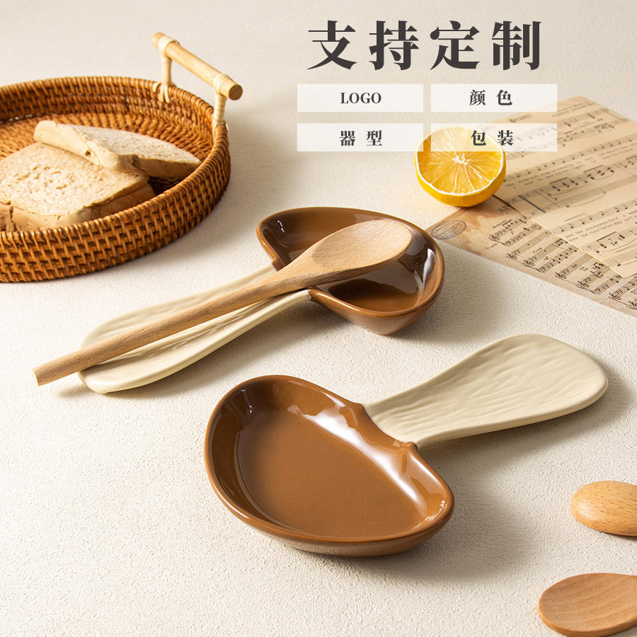 Repose-cuillère en céramique de Chaozhou, forme champignon, brun foncé, rouge, lavage à la main uniquement, support de logo personnalisé