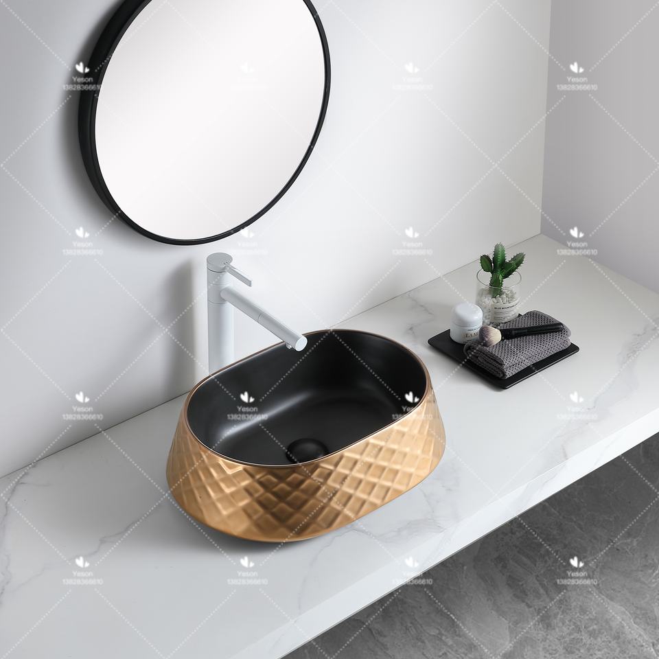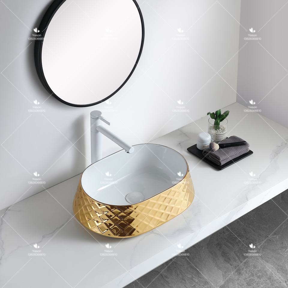 Chaozhou Usine Pas Cher Prix Galvanoplastie Table Top Forme Ovale Lavabo En Céramique À La Main Art Évier pour Salle De Bains
