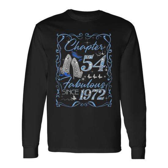 Chapter 54 Fabulous 1972 T-shirt à manches longues et col rond avec impression thermocollante, unisexe, cadeau pour le 54e anniversaire, pour les réunions de famille/les fêtes
