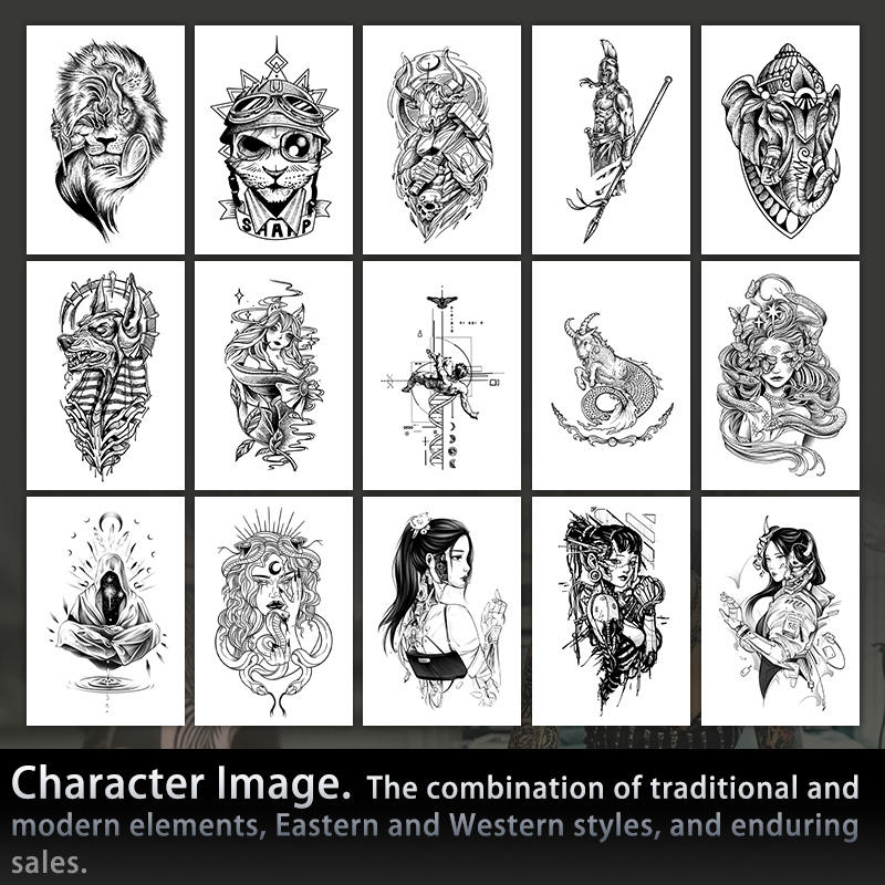 Caractère et Beats Design Tatouage Temporaire Style Sacré Tatouage Semi Permanent Étanche Durable pendant 2 Semaines Tatouage À Base De Plantes pour Bras