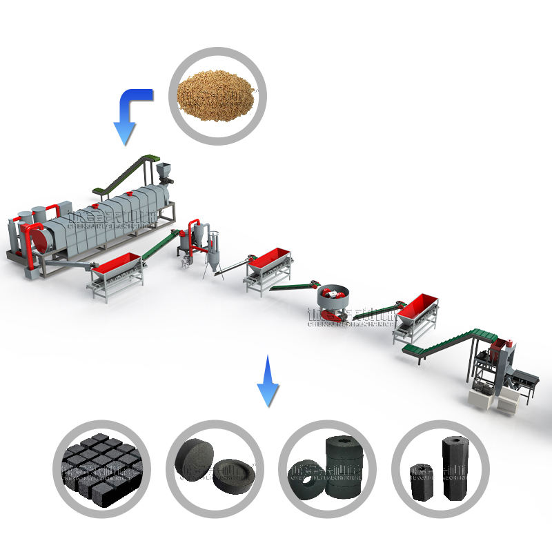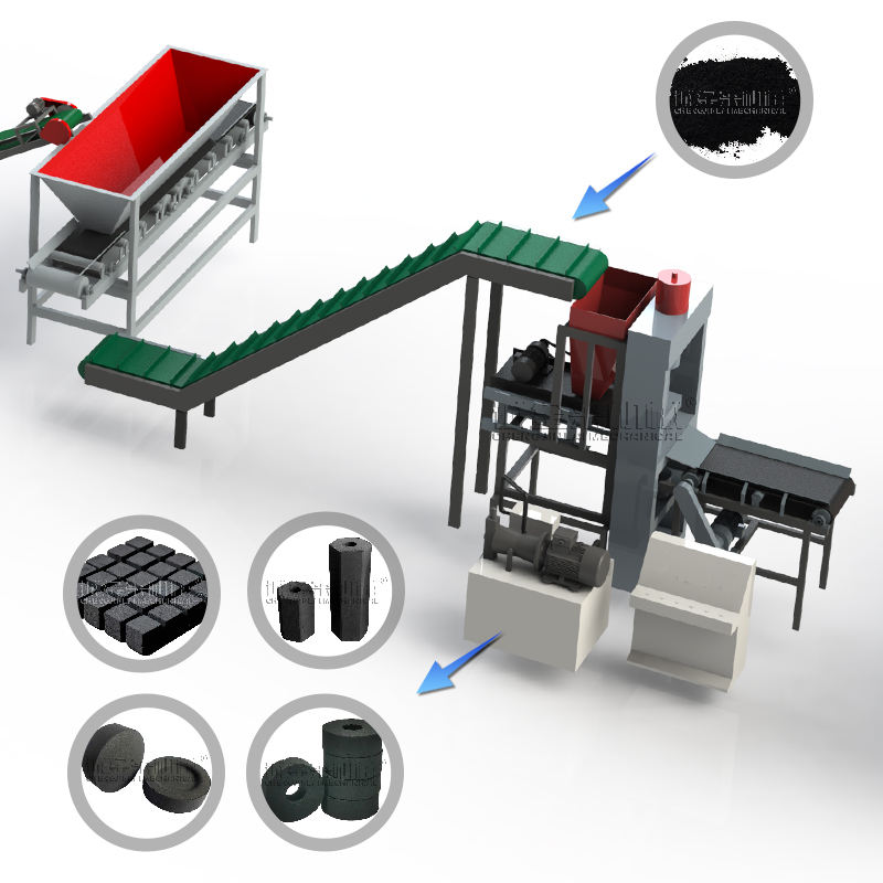 Ligne de fabrication de briquettes de charbon de bois, moteur AC, presse hydraulique haute capacité, charbon de bois pour barbecue/chicha, cube de charbon de bois, déchets de bois, 1-10 tonnes