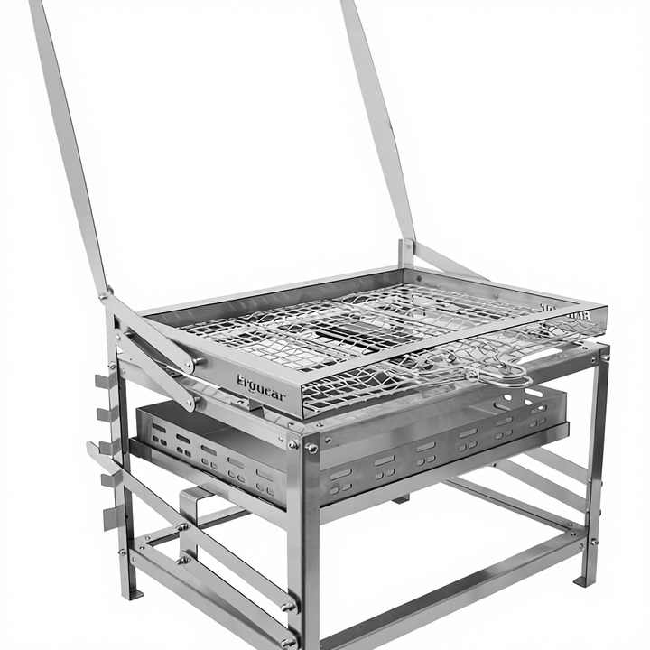 Barbecue au charbon Ergocar, multifonctionnel, portable, rotatif, hauteur réglable, aération, plateau à charbon à 4 niveaux, pour fumer, pique-niques