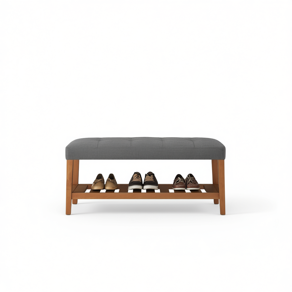 Banc à chaussures en tissu gris Charla avec rangement pour chaussures, meubles modernes pour salon
