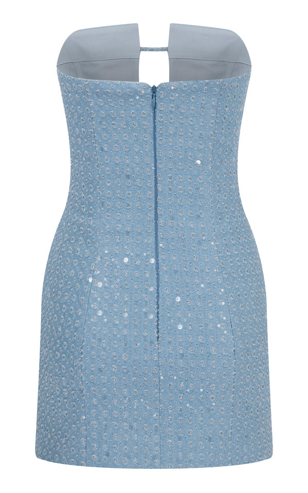 Robe courte en jean décontractée de la collection Charlotte, ornements, taille naturelle, motif uni, tissu en laine peignée lavable disponible