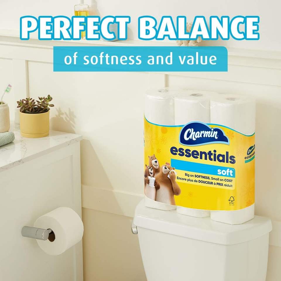 Papier toilette doux Charmine Essentials, 9 méga-rouleaux = 36 rouleaux standard