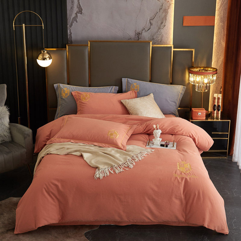 Ensemble de literie de luxe en coton 100% respirant et charmant, tricoté, 4 pièces, imprimé à rayures, couleur unie, motif brodé