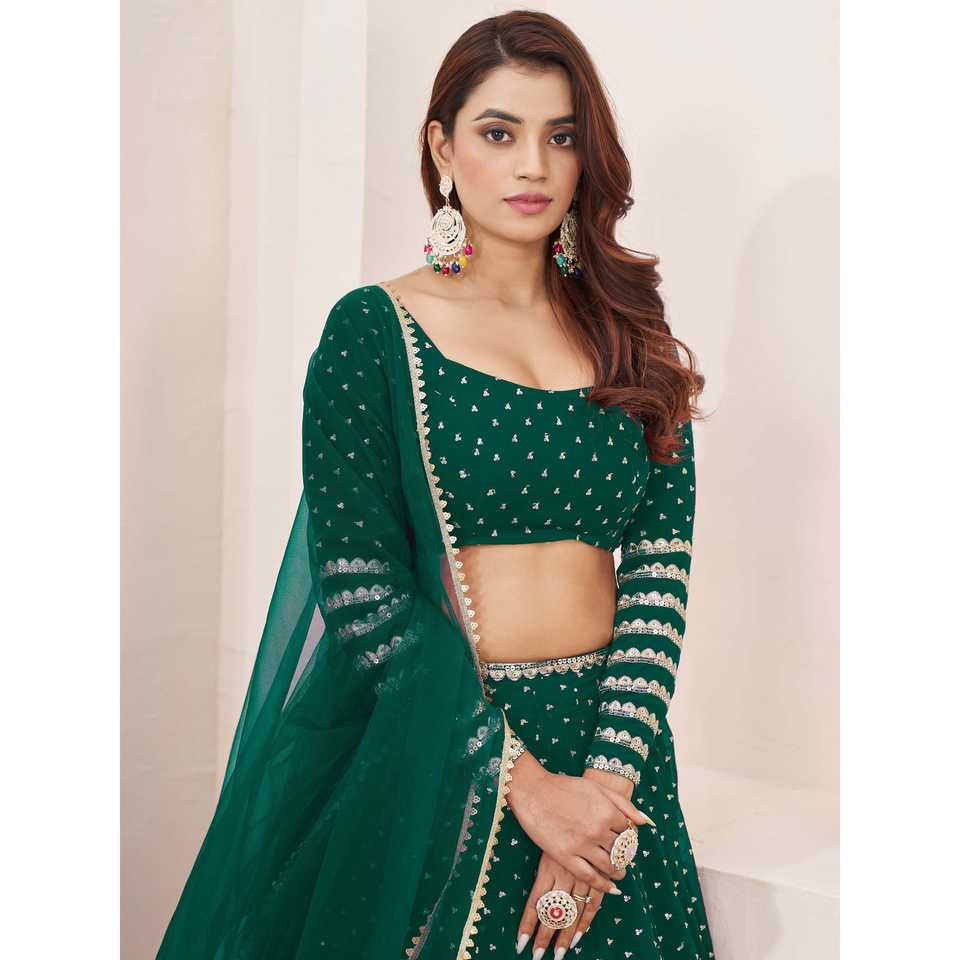 Charmant Lehenga Choli en Georgette à Paillettes Vertes Semi-Cousu 2000g avec Dupatta