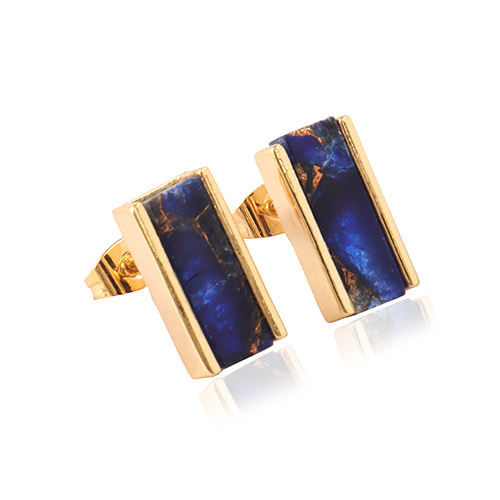 Charmante personnalité dames 24K plaqué or en forme de barre en laiton boucles d'oreilles 5x15mm cuivre bleu saphir turquoise mariages