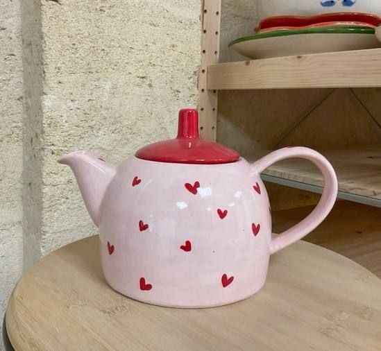 Théière charmante à motif de cœurs roses avec bec verseur de précision, poignée confortable et corps isotherme pour le service du thé