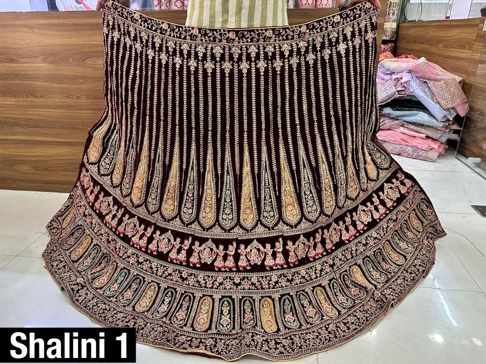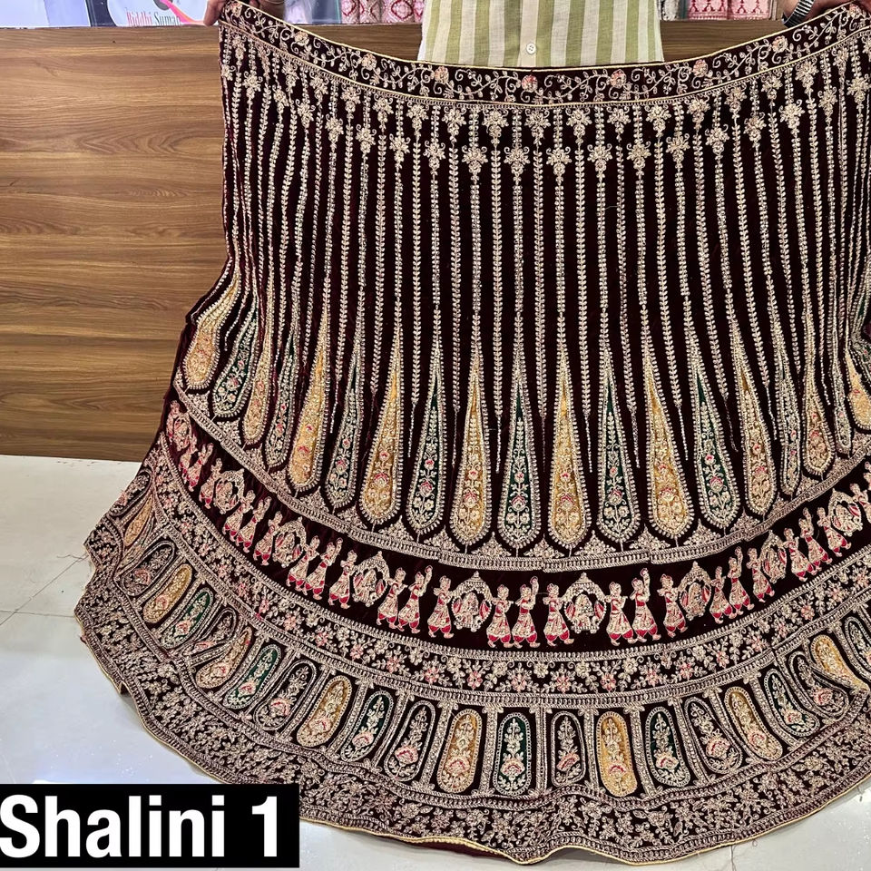 WORK:11000 VELVET LEHENGA HEAVY JARKAN WORK CUT PASTE WORK