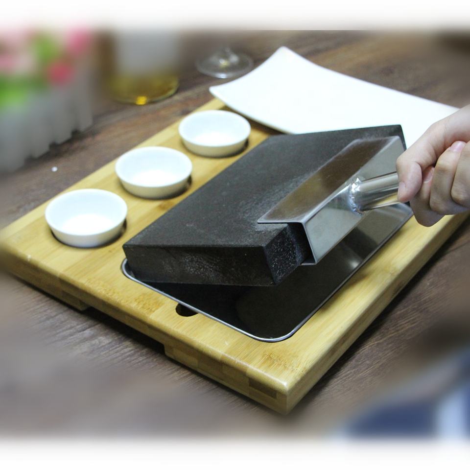 Chaude Steak Plaque de Pierre Table Gril et Pierre De Lave BARBECUE Intérieur Pierre à Griller par plateau en bambou