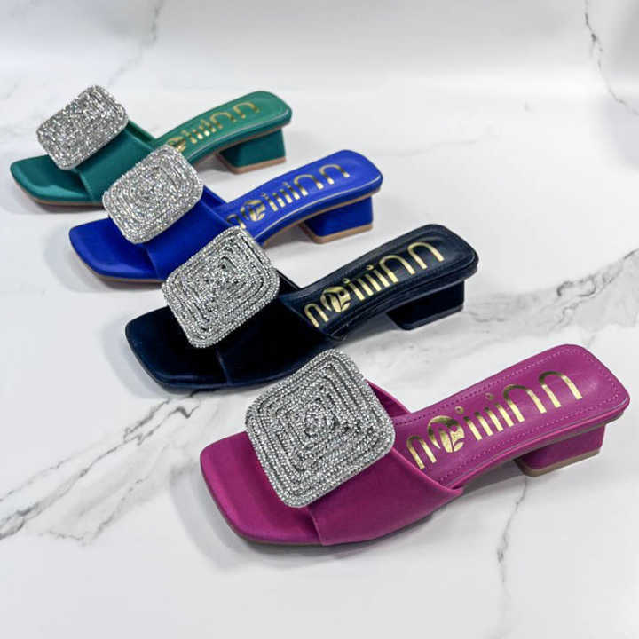 Sandales Femme Luxe à Talons Bas et Strass, Style Chunky, Tendance Été 2025