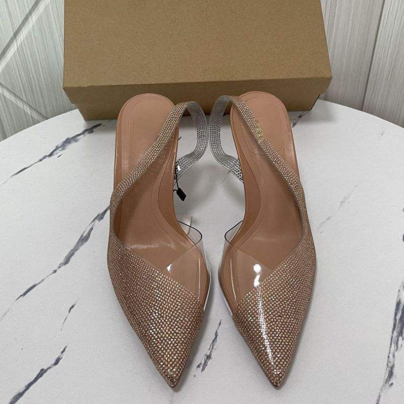 Chaussures femme mule à talon clouté, sandales slingback tendance été 2024