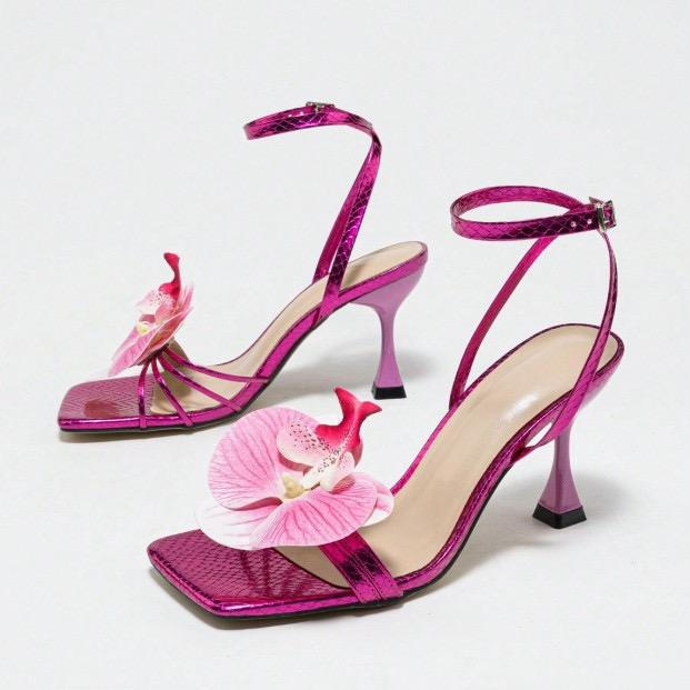 Chaussures à talons pour femmes, escarpins style été, fleur rose, talon haut pour femmes