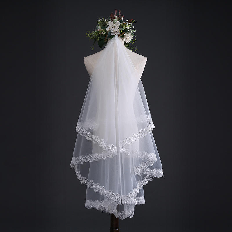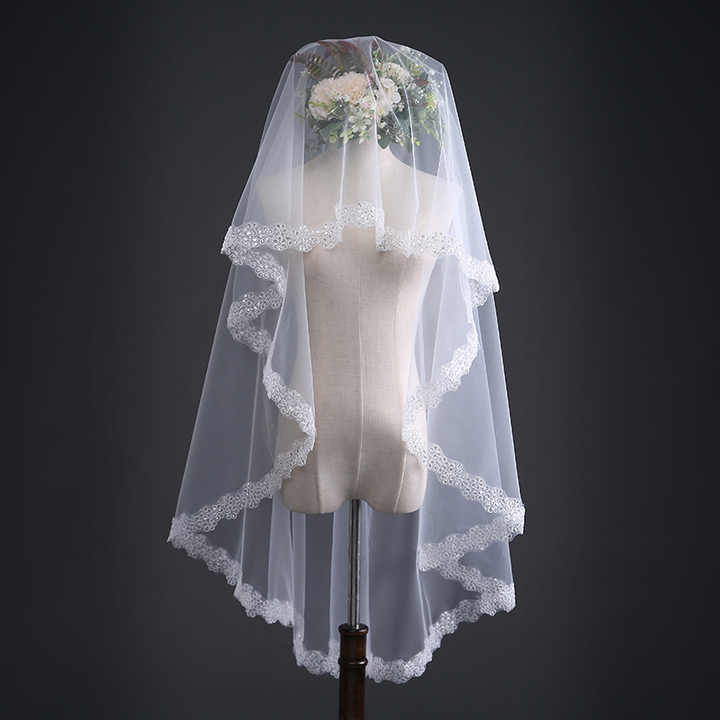 Voiles de mariée en dentelle bon marché de 1,5 m, appliqués, pailletés, voiles de mariée courts à un niveau