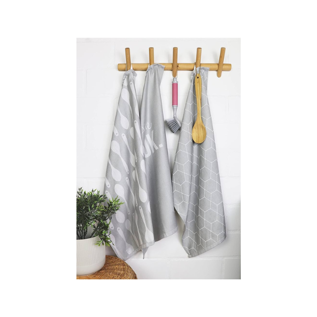 Bon marché 100% coton brodé 20x30 pouces 145 GSM fait à la main léger à absorption rapide meilleure vente torchon gris durable