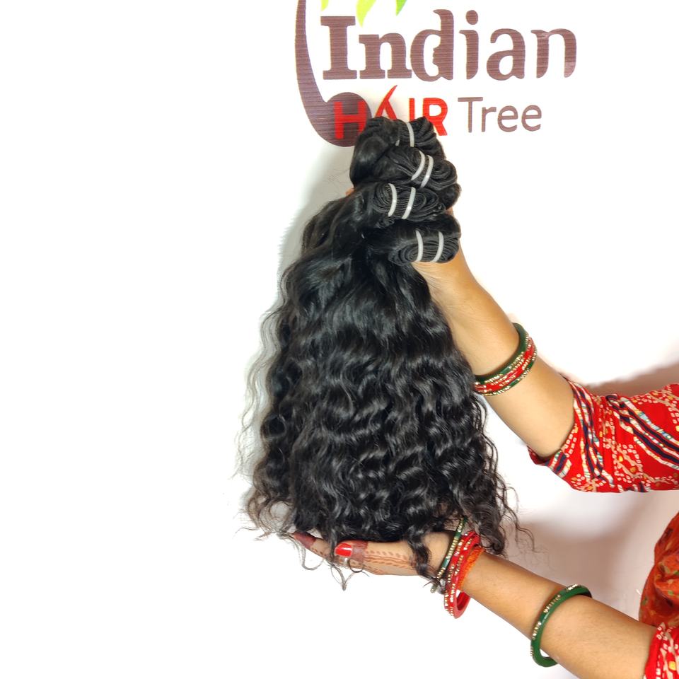 Pas cher 100% Couleur Naturelle Noir Crépus Soyeux Buldle vague Profonde Vague Remy Indien Extensions de Cheveux Humains pour les Femmes