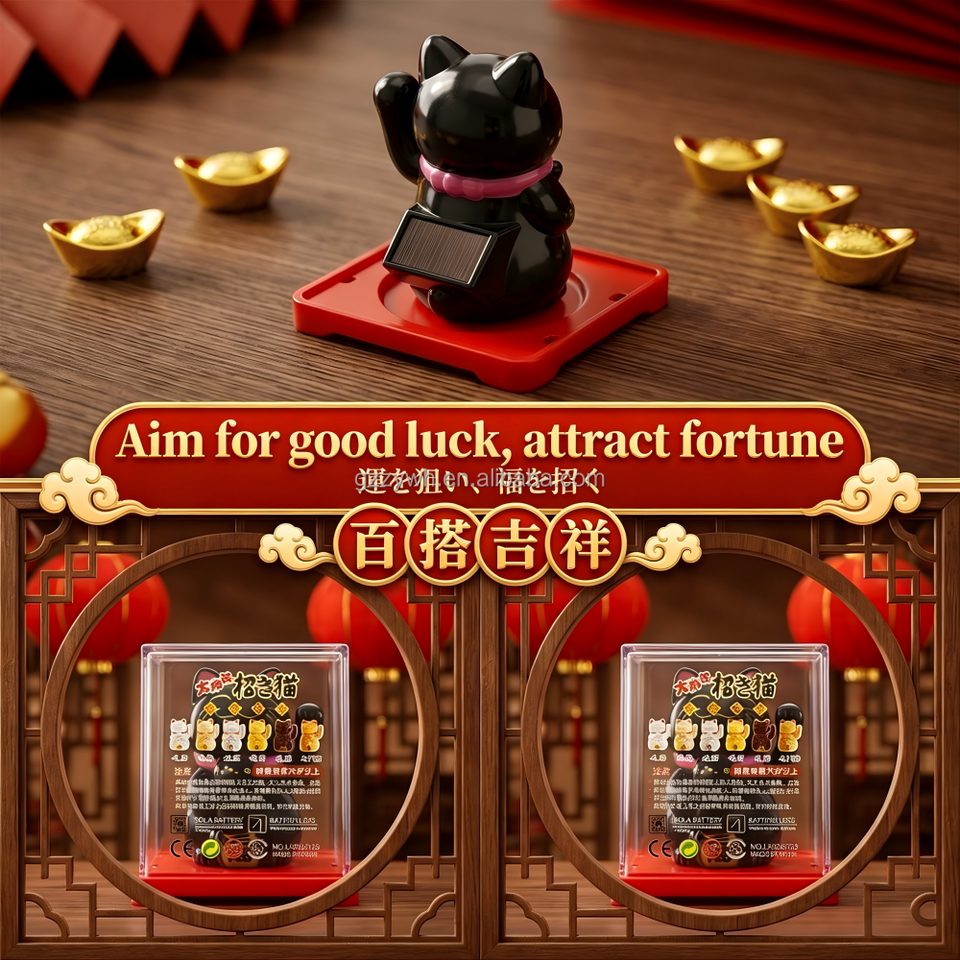 Pas cher 2 pouces ABS décoration de voiture chat chanceux solaire alimenté automatique main secouant Maneki Neko solaire décoration de la maison chat de fortune