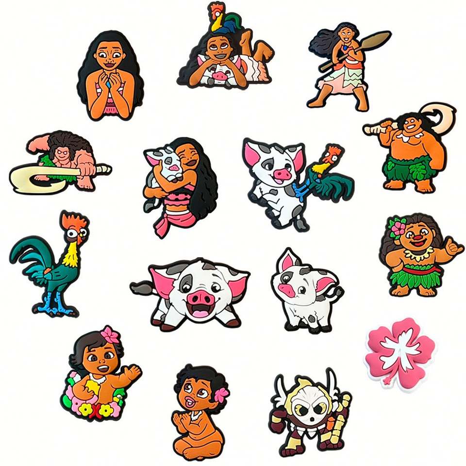 Pas cher 2025 nouveauté moyenne filles triste grenouille Moanas charme noir histoire mois caoutchouc sabot breloques Maui PVC chaussure charme