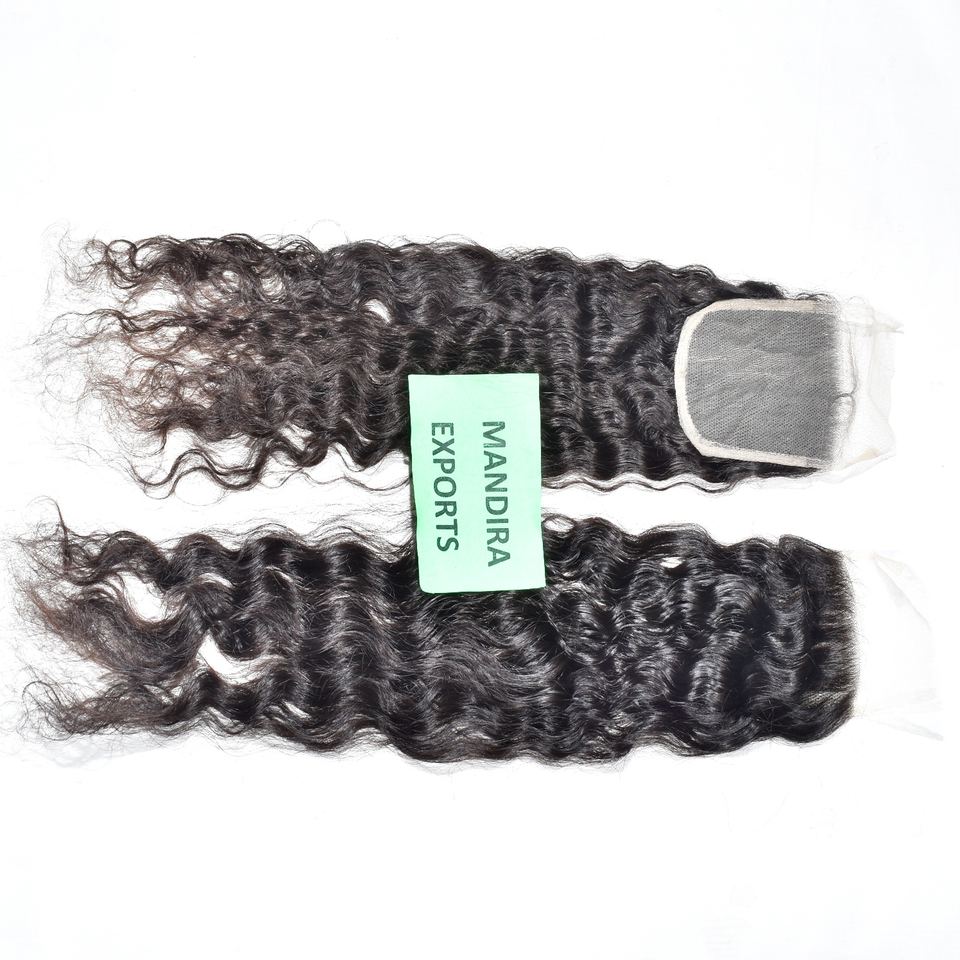 Lots de Cheveux Humains Indiens de Temple 100% Non Traités, Cuticules Alignées, Ondulés, Deep Wave, Water Wave, 4*4 Closure, Vente en Gros, 100g, Prix Abordable