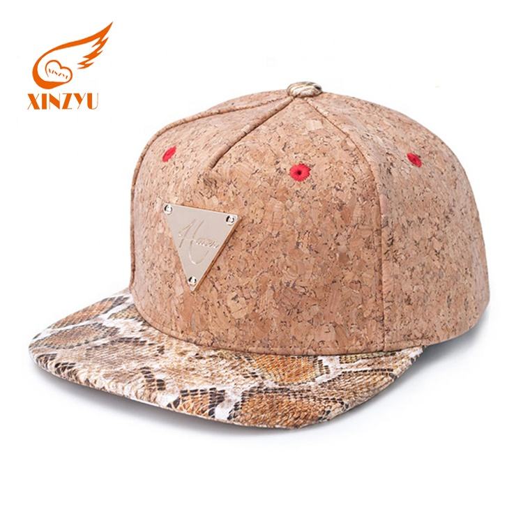 Casquettes Snapback à 5 panneaux en cuir de serpent avec plaque dorée et visière en métal – Prix abordable